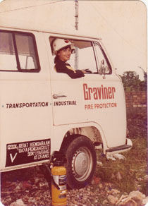 Company Founder Peter Isman (Left) with Gapura Raya's Service Car in 1970